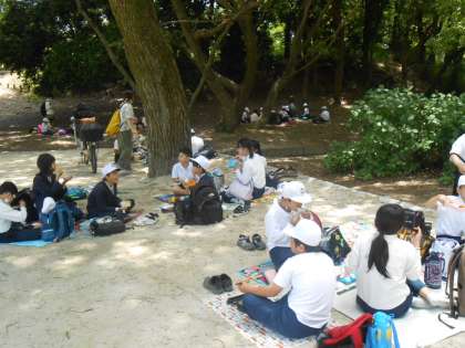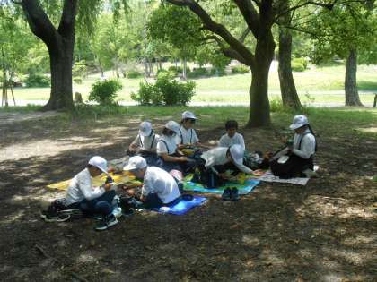 5年生 遠足2 公開日 2023/05/12 更新日 2023/05/12 5年 ようやくお楽しみのお弁当&おやつタイムです。日陰で班ごとに食べました。みんな食べ終わった後は、遊び企画として、広場で鬼ごっことドッジボールをしました。
