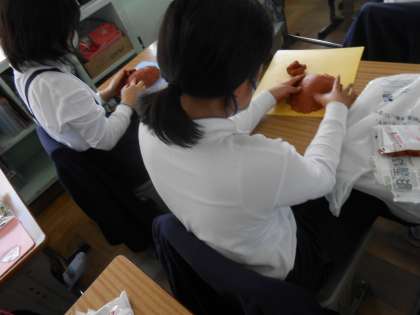 図工の時間に紙粘土をコネコネして顔の形を作っていました。今後、「守り神」になっていくそうですが、過去の先輩が作った作品を見ると、かなりおもしろい出来映えになっていました。楽しみながら作成してほしいものです!