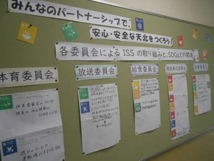 5月19日 SDGs通りができています! 公開日 2023/05/19 更新日 2023/05/19 お知らせ 各委員会ごとにまとめたISSの取り組みとSDGsの関連について北館1階に掲示されています。天北みんなのパートナーシップで、より安心・安全な学校をつくっていきましょう!