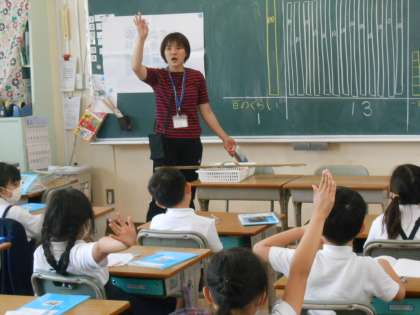 2年生は算数の時間に、位取りについて学習しています。10のくらいに13本ぼうが入っていますが、「それはあかーん!」と子どもたち。先生の「何がいけないの?」という質問に一生懸命答えようとする2年生たちでした!