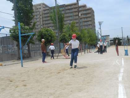 6年生 より高く,より遠くへ 公開日 2023/05/25 更新日 2023/05/25 6年 高学年は、体育の時間に走り幅跳びをしています。6年生も、写真のように一人で練習したあと、測り合っていました。