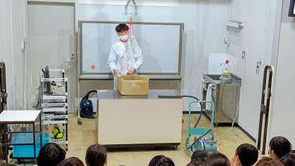 最後はサイエンスショーです。今日のテーマは「空気」でした。空気の力で重い物を持ち上げたり、吸い上げたりと、驚きに驚きが重なり、科学の世界に興味を持った人もいるのではないかな?と思います。