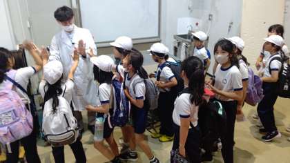 サイエンスショーが終わった後は、人なつっこい4年生。科学のお兄さんとフレンドリーにタッチしながらお別れしました♪