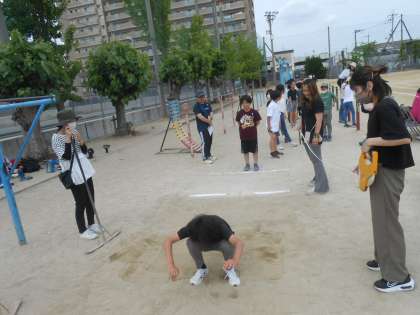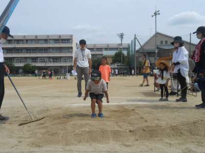 中・下:立ち幅跳びです。できる遠くに一生懸命ジャンプをしていました。大きく腕をふって、これからも記録をのばしてくださいね!