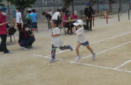 50m走は、3人1組で走りました。応援してもらいながら、笑顔で走る人が多かったです!1年生のかわいらしい走りと、6年生の迫力ある走りに「5年間の成長」を感じました♪