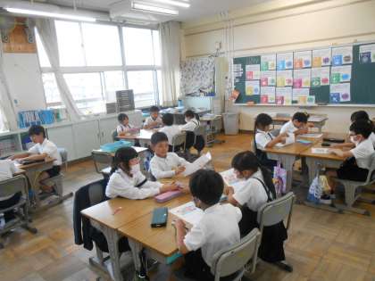 2年生にもSDGs博士がやってきて、学習をしました。2年生の人たちは、「今自分にできること」をたくさん考えて、グループごとに交流できていました。博士は、これでどの学年にも授業に行ったことになります。一人ひとりの行動が、明日の地球を救います。お家でもできることを子どもたちといっしょに考えてみてはいかがですか?