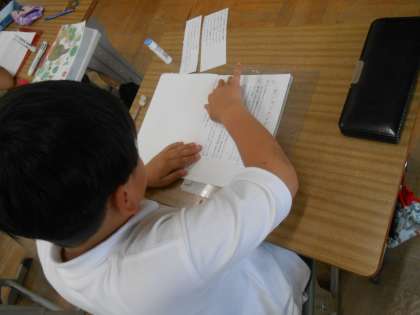 4年生 国語の時間 公開日 2023/05/30 更新日 2023/05/30 4年 教科書の文章を短く分けてバラバラにした短冊を配り、「どの順番で教科書に書かれているか」考えました。「この言葉があるから・・・」「最後はこれだと思う」といろいろと書かれている言葉を根拠にしながら並べ替えていました。最後は、正しい並び方にしてノートに貼りました。