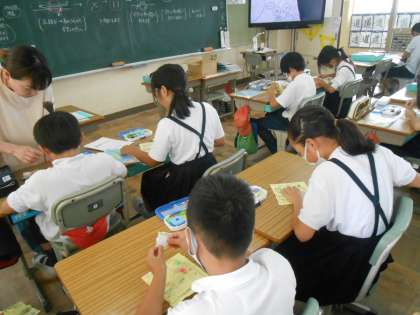 5年生になり始まった新しい家庭科の教科。今日は、布にボタンを縫いつける学習をしました。とても集中していましたがまだ慣れない手作業に四苦八苦の様子。あきらめない気持ちとオーラがあるので、みんなでできるようになっていきましょうね!