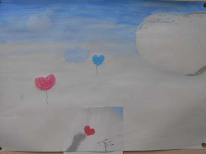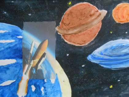インターネットからお気に入りの絵や写真を探して、画用紙の一部に貼り、その周りは、自分の想像を自由に膨らませて描いていきました。おもしろい作品、美しい作品、いろいろな個性が描かれていました♪