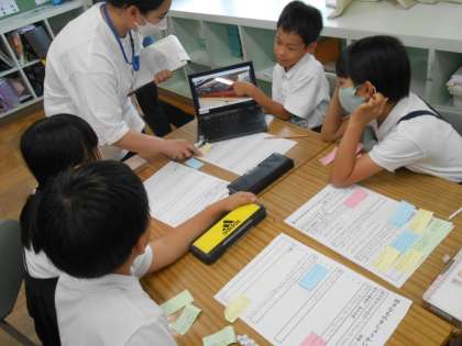国語科研究授業・・・力を出し切れた4年生! 公開日 2023/06/08 更新日 2023/06/08 4年 たくさんの先生に囲まれて緊張する人もいましたが、自分の考えをしっかりと相手に伝え、しっかりそれを聞いて、自分の考えを深めるという今日の授業の目標をたくさんの人がやりきっていました。講師の先生も4年生の姿をとっても褒めてくださいました!