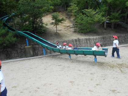 後半戦スタートです!遊具が見えたときからうずうずしだしていました!走るようにたくさんの人が、大きいすべり台に一目散!何度も何度も滑る人もいれば、勇気を出して1回滑って、「もういいわ」と言う人もおり、様々な過ごし方をしていました。