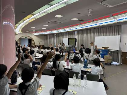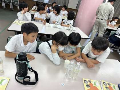 6月9日 4年 水道出前授業 公開日 2023/06/09 更新日 2023/06/09 4年 松原市の上下水道部の方々から、水道水のできるまでや、節水の大切さなどを実験やビデオを交えて説明してくれました。 子どもたちは、実際に川の水の中の汚れを取り除く方法や、水道水の塩素を確認する方法を体験的に学んでいました。 感想からは、「こんな大変な事をして水ができているのに驚きました。」「水を大切に使おうと思った」など、多くの考えが出ていました。
