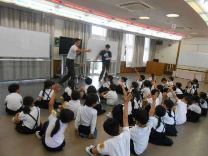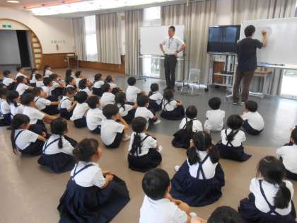 校長先生に続いて、今日は教頭先生の仕事の話を聞きました。たくさん仕事についての質問を1年生たちはすることができました。最後に、1年生のがんばりを教頭先生にたくさん褒めてもらいました♪