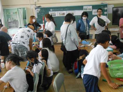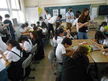 図工の時間。色がわりゴマを、お家の方といっしょに作成しました。「どんな色になるのかやってみたい!」という声から実際に作ることになりました。紙を引っ張りながら巻くことに苦戦しながら楽しんで作っていました!