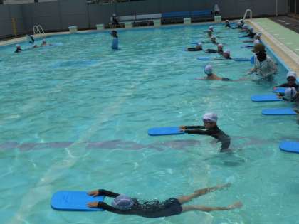 1年生 初めてのビート板 公開日 2023/07/03 更新日 2023/07/03 1年 今日も暑くなりました。水が「気もちいい!」と1年生も喜んでいました。けのびも少しずつ慣れてきたので、今日はビート板を持って少しでも長い間浮いていられるように練習をしました!