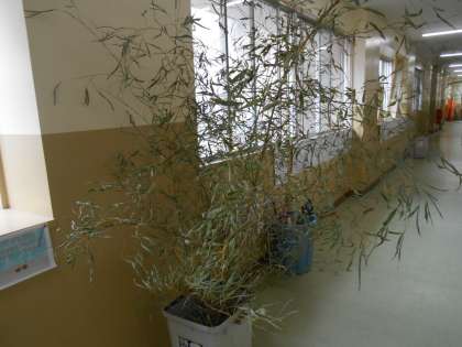 写真の笹は1年生の廊下にありました。7日は今のところ晴れそうです。素敵な飾りを今後つけていきながら、みんなの願いが届く日になるといいですね☆ミ