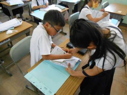 3年生の様子 公開日 2023/07/11 更新日 2023/07/11 3年 上:懇談のときにお家の人に見てもらうテストを、テストファイルからとり、ひもにくくる作業中です。助け合い、支え合いが当たり前の雰囲気が素敵な3年生でした♪ 中・下:理科の時間、ゴムののばし具合を変えると、どのように車が進むかの実験をしています。10cmのばしたときより、20cmのばしたときの方が、とても遠くまで進み、歓声が上がっていました!