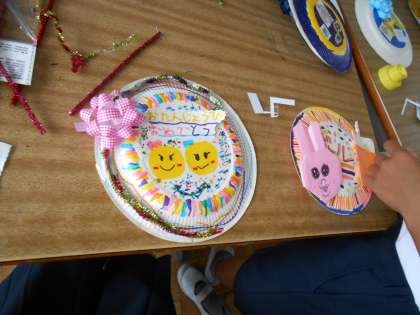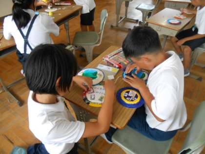 学習室で、お誕生日会のときに贈るプレゼントを企画メンバーが作成していました。もらう人のことを考えて、ていねいに作っていました♪