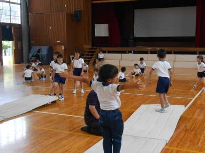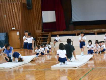 2年 ビシッとかっこよく! 公開日 2023/07/12 更新日 2023/07/12 2年 後転のテストが金曜日にあるそうです。1回目は坂道ありで後転、2回目は坂道なしで後転をします。最後の決めポーズまでしっかり練習していました!