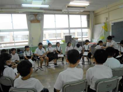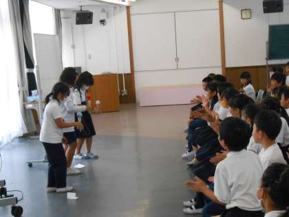3年生 語り合い、楽しみ合い 公開日 2023/07/19 更新日 2023/07/19 3年 上:一学期の自分のがんばりを友だちに伝える会をとりました。自分の苦手なことを周りの友だちに助けてもらって、できるようになったことを伝えている人もいました! 中・下:お楽しみ会をしました。この日のために、なぞなぞ、マジック、お笑い、けん玉などをみんなの笑顔を想像しながら用意してきました♪とても楽しい時間を過ごすことができました!