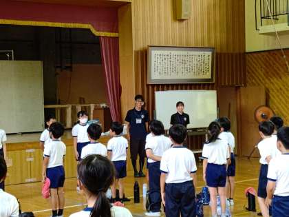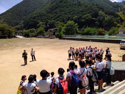 宮滝野外学校到着! 公開日 2023/07/26 更新日 2023/07/26 5年 バスレク係が考えてきたバスレクは大いに盛り上がり、あっという間に宮滝野外学校に到着です!入所式を終え、今からお弁当です!