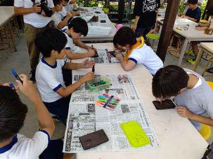 焼き板づくり 公開日 2023/07/27 更新日 2023/07/27 5年 林間の思い出に焼き板づくりをしました。 あらかじめ焼いておいたし、絵も考えておいたので、さくさくと活動は進みました。手足がススだらけになってしまった人もたくさんいました。 しかしこれからの川遊びタイムでしっかりススも落としましょう! (川遊びは、今回の林間で1番楽しみにしている人が1番多かった活動です!)
