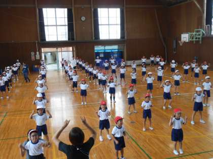 9月5日 1・2年生 ダンスの練習開始♪ 公開日 2023/09/05 更新日 2023/09/05 2年 1、2年生が合同でダンスをします。最初は動きが小さかった人も慣れてきたら大きく動けていました。本番に向けて、しっかり覚えましょうね!