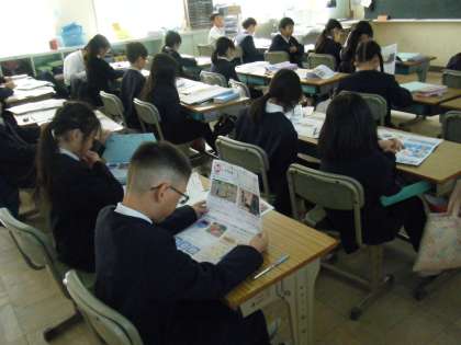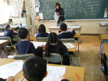 いろいろな学年が、テストを返してもらい、正しい答えを教えてもらって、ファイルにはさむ作業をしていました。