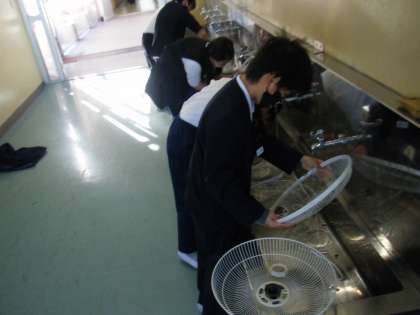 大掃除 〜冷たい!〜 公開日 2023/12/22 更新日 2023/12/22 お知らせ 本当に寒かった日ですが、手洗い場や扇風機を黙々ときれいにしている人や、「見てー!バケツの水、真っ黒ー!」と喜ぶ2年生の人たち。手を真っ赤にしてまで掃除をしてくれて、本当にありがとう!