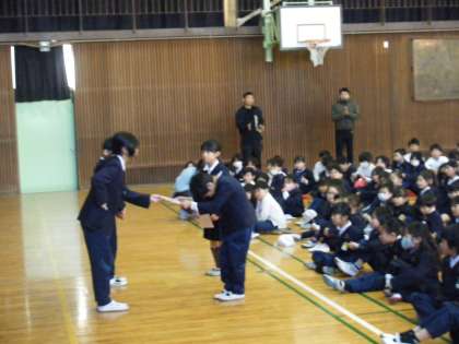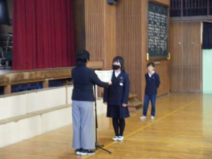 表彰状を渡しました 公開日 2023/12/22 更新日 2023/12/22 お知らせ 上・中:MOA児童作品展で表彰された2名を、学校でも表彰しました。本当におめでとう! 下:代表委員がつくった「自分の目標を達成しよう」という月目標。クラスの全員が自分のたてた目標を達成できたとして、代表委員の人が2年2組と4年2組に表彰状を渡しました!