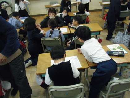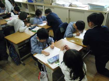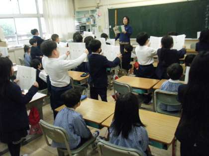 天北保交流 〜授業体験〜 公開日 2024/01/18 更新日 2024/01/18 1年 4時間目は、2グループに分かれて、1年生の教室で授業体験をしました。 起立・礼をしてから1年生たちのかっこいい音読を聞いてもらいました。その後、園児たちは、鉛筆をもち、文字を書いたり、図形を描いたりしました。最初はカチコチに固まっていた園児たちは、褒め上手な1年生の言葉でホンワカした人が多かったです♪