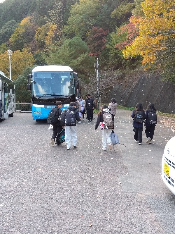 お昼ごはんのカレーをたべたあと、退所式をしました。お世話になった宿舎の方へしっかりお礼を伝えました。バスに乗って学校へと向かいます。
