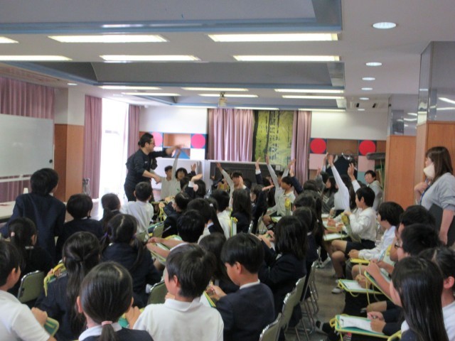 3年生は、2学期の総合的な学習の時間に「だれもが安心してすごせる町」の学習をしています。今日は、ゲストティーチャーからの聞きとりをしました。生まれて2か月の頃に耳が聞こえなくなり、これまでどんなふうに生きてこられたのか…、小さいころからのことをお話してくださいました。最後は、手話クイズなどもしてくださり、子どもたちは楽しみながらお話を聞いていました。