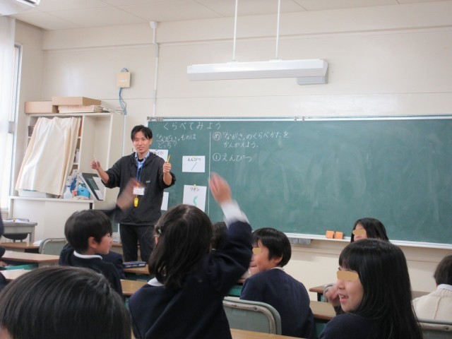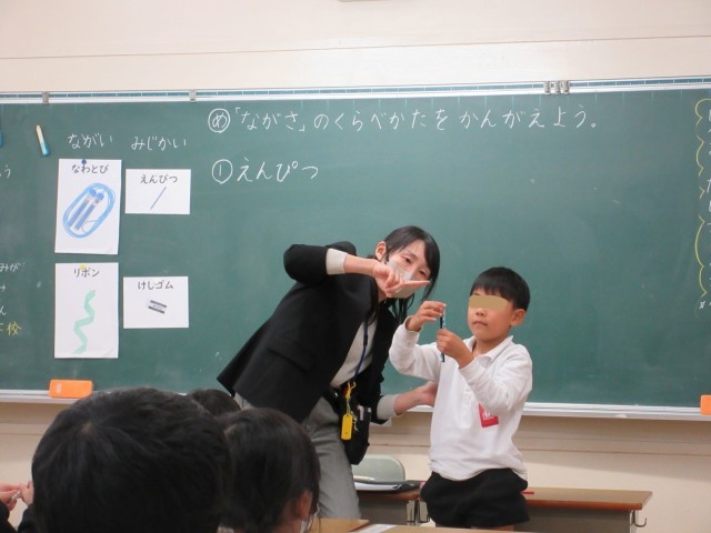 1年生の参観授業の教科は算数でした。「いろんなものの長さをどうやってくらべたらいいだろう?」ということを、みんなで考えていました。1学期の参観授業より、落ち着いて話が聞けるようになりました!