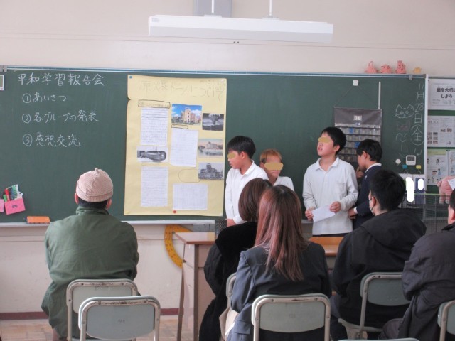 6年生は、グループごとに平和学習をしてわかったことや考えたことについて、グループごとに発表していました。ヒロシマ修学旅行も終えて、一人ひとりが今考えていることをしっかりと伝えられましたね。