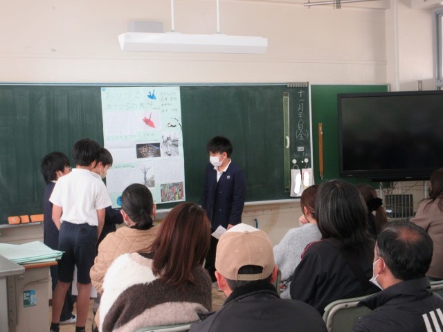 2年生は、生活科の「校区探検」で行ったいろんな場所について発表をしていました。模造紙や画用紙にまとめたことを、クイズ形式にしてわかりやすくお家の人たちに伝えました。お家の人に楽しく参加してもらえましたね。