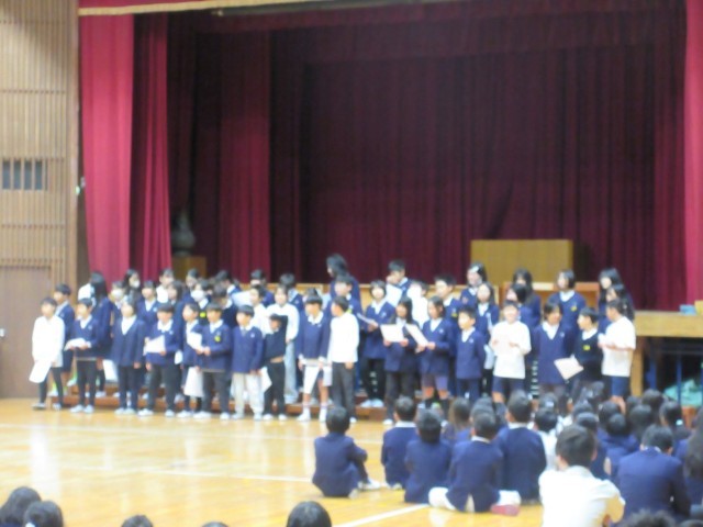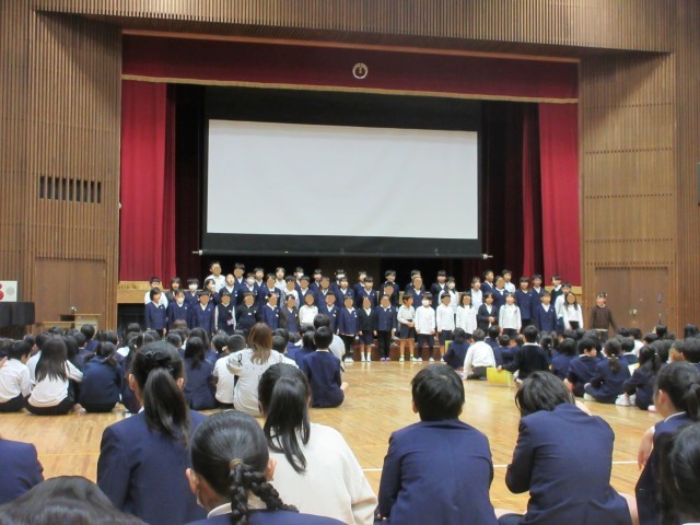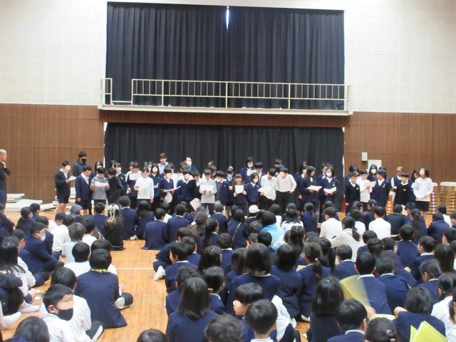 今日のガッツだ集会で、5年生が「山」という詩の群読をしてくれました。とても力強い発表を聞いた後、他学年からは「心のこもった声で発表できていた」「はきはきとした言葉で、よく伝わった」と感想をもらいました。5年生、よくがんばりました!