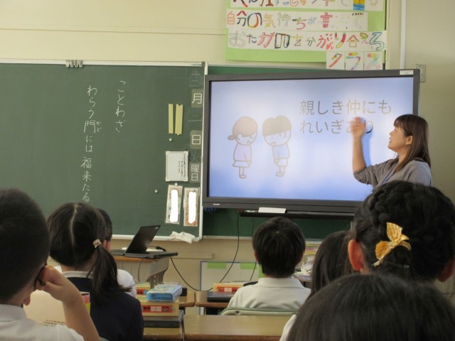 3年生は、どちらのクラスも国語「ことわざ」の学習をしていました。「さるも木から落ちる」「石橋をたたいて渡る」など…昔から人々に語り伝えられている「教訓」や「知識」について、考えていました。