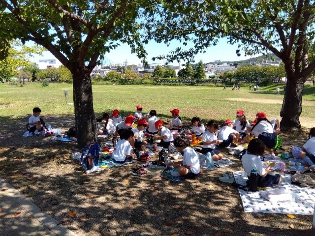 ドングリをたくさん拾ったあとは、楽しいお弁当タイムです。