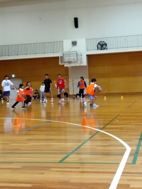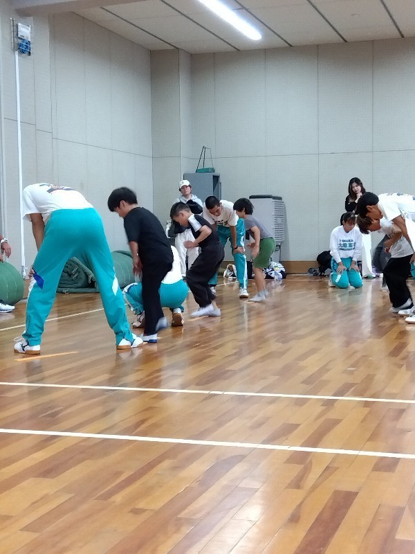 大塚高校でスポーツ交流をしています。高校生のみなさんが丁寧に教えてくれています。初めての児童も経験のある人もみんな楽しそうに体を動かしています。