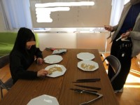 プラバンコーナーです。プラスチックの板に、絵をなぞったり自分のオリジナルの絵を描いたりしてトースターで温めます。作品を5つ以上作って得意げに見せてくれる子どもたちがたくさんいました。