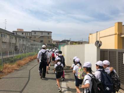 いいお天気になりました。5年生の子どもたちが、会場の岡 松原市運動広場に向かって出発しました。