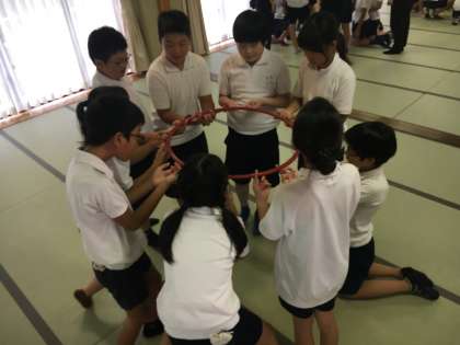 五年林間 公開日 2019/07/04 更新日 2019/07/04 学校行事 お昼ご飯も終わり、いよいよ二日間の団結を高めるチームビルディングをはじめています。みんなで協力する掛け声が上がっています。