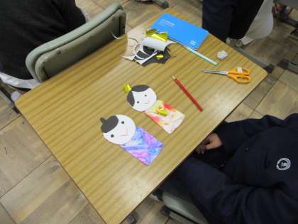 今日は、工作でおひなさまとおだいりさまをつくりました。