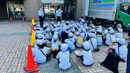 元気よくあいさつをして、松原市博士(まつばらしはかせ)を目指してお話を聞いています。