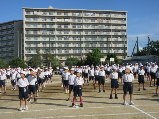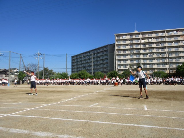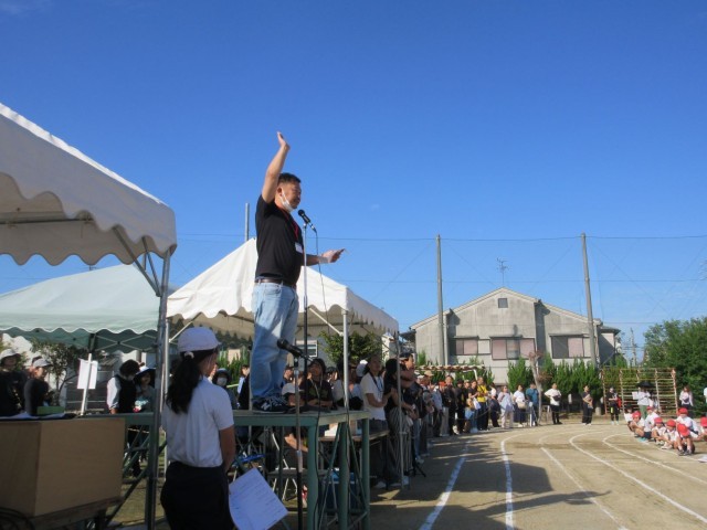 最高気温30度を超える暑い日でしたが、真っ青な空の下、無事運動会を開催することができました。朝早くから参加してくださった来賓・保護者のみなさま、子どもたちを見守っていただき、本当にありがとうございました。防犯協議会の方々にも校門の安全管理や自転車整理をしていただき、安全に終えることができました。受付や片付けの中心を担っていただいた、PTA役員のみなさん、一日ありがとうございました。
