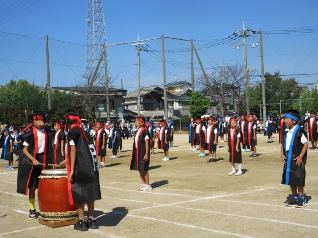 運動会に向けて一番多く練習をしてきた応援団の子どもたち。団長はじめ、精一杯の声を出して運動会を盛り上げてくれました。今年度の運動会は「赤組優勝」という結果でしたが、どちらの色も本当に最後までよくがんばりました。応援団員のみなさん、本当にお疲れさまでした。