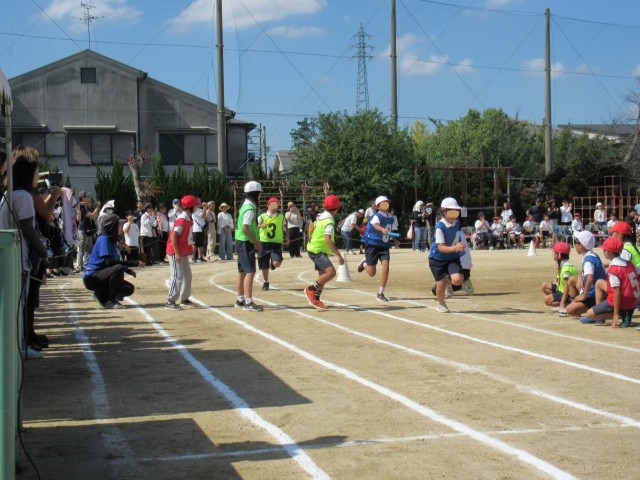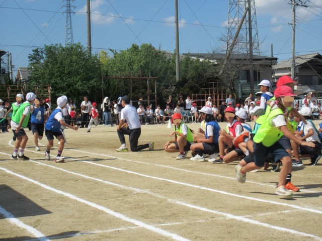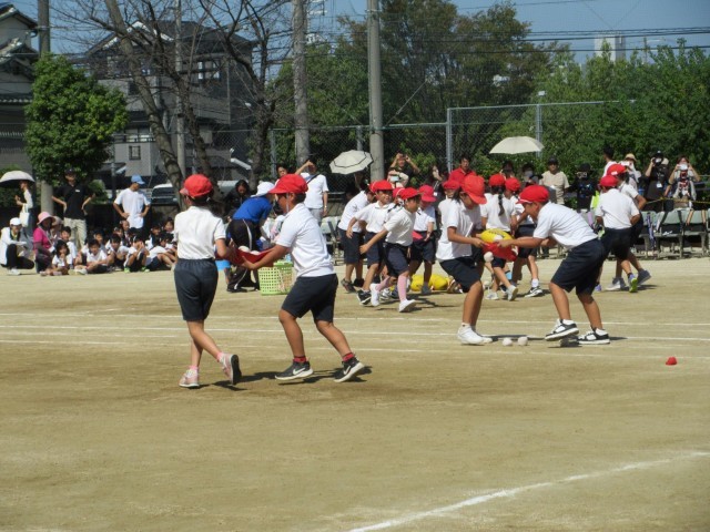 プログラム最後の競技は、3年生以上の色別対抗リレーです。バトンパスもきれいに決まり、迫力のある走りを見せてくれました。