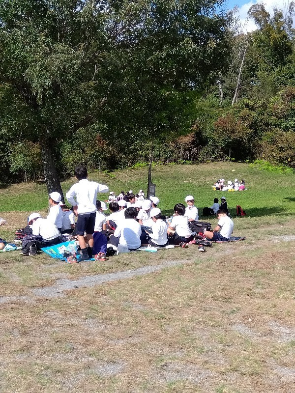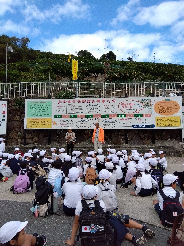 学校に着き解散式をしています。子どもたちの感想より、みかん5個以上食べた。甘いみかんの木を見つけた。など楽しかった遠足についてたくさんの人が伝えてくれました。明日も遠足なのでしっかりと休息をとってください。