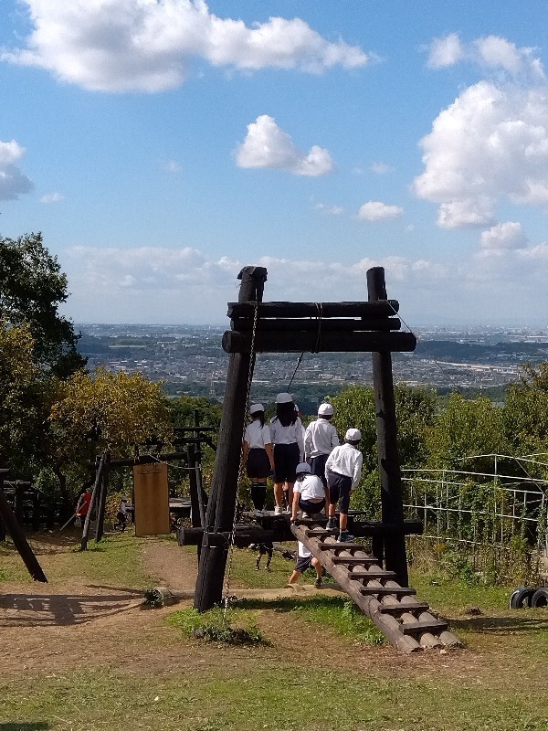 みかんがりだけでなく、山頂にあるアスレチックも楽しんでいます。今からお待ちかねのお弁当タイムです。